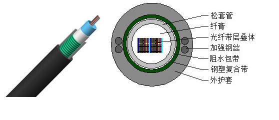 钢带铠装及4钢丝结构,增加光缆抗拉性能
