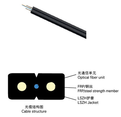 FTTH室内光缆是将光通信单元处于中心。两侧放置两根平行加强件,最后,挤制黑色或彩色低烟无卤阻燃护套成缆。