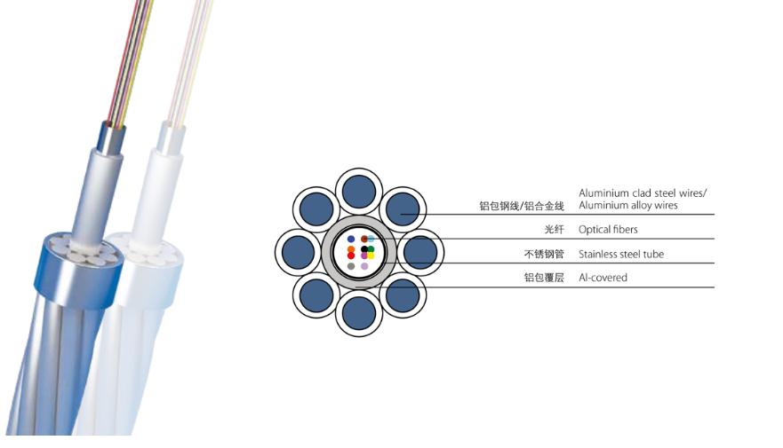 铝包不锈钢管外绞合1 至2 层单丝,可以是全铝包钢线或铝包钢线和铝合金线混绞。