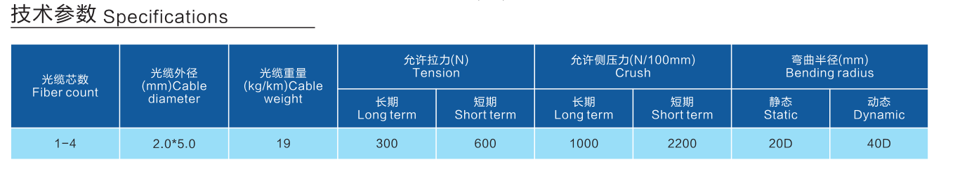 ·两根平行FRP或钢丝具有良好的抗压性能,保护光纤。
