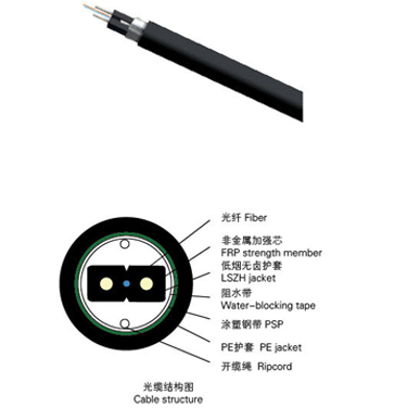 • 两根平行加强元件使光缆具有良好的抗压性能,保护光纤